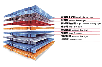 彩石金屬瓦,采用特殊工藝技術(shù)生產(chǎn)制造,以防腐性能優(yōu)異的耐指紋鍍鋁鋅鋼板為基板,以水性丙烯酸酯為粘合劑,以彩色燒結(jié)玄武巖為面層裝飾,再以耐候性極強(qiáng)的丙烯酸樹(shù)脂為保護(hù)層的優(yōu)質(zhì)金屬屋面材料。其美觀、輕質(zhì)、耐用、環(huán)保,近年來(lái)已經(jīng)成為國(guó)際屋面材料的主流產(chǎn)品,國(guó)內(nèi)高檔建筑使用。>